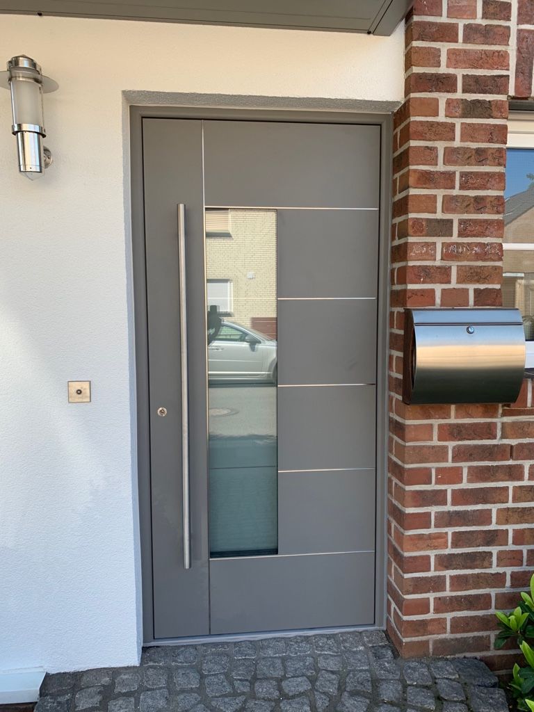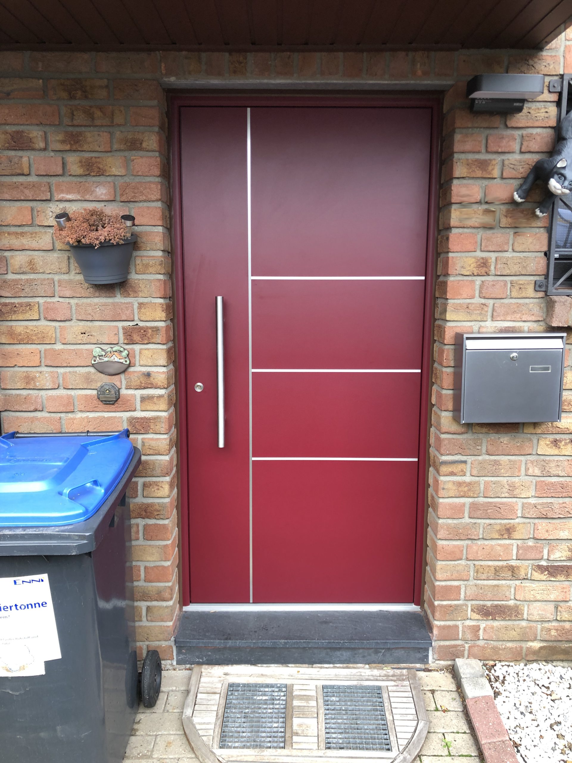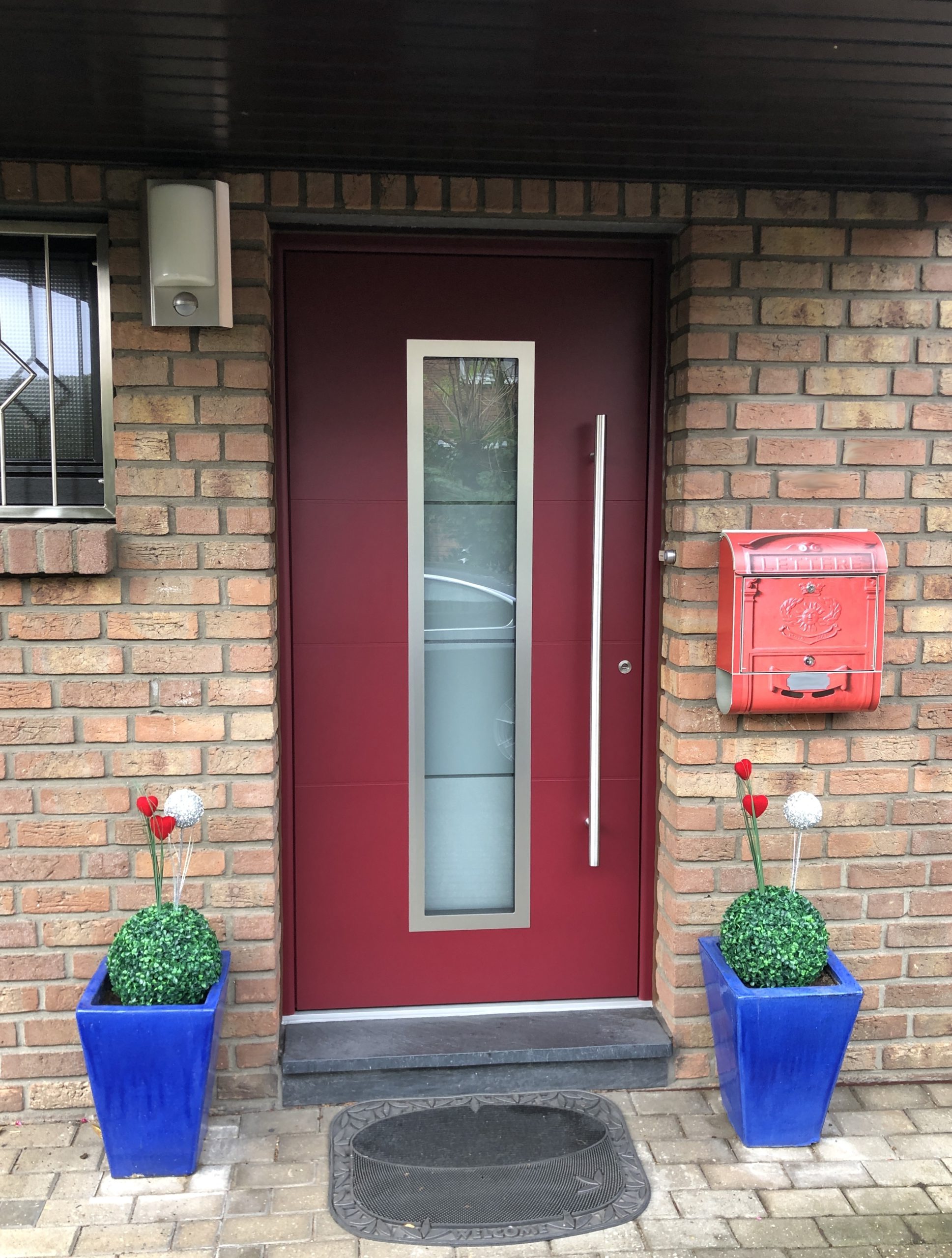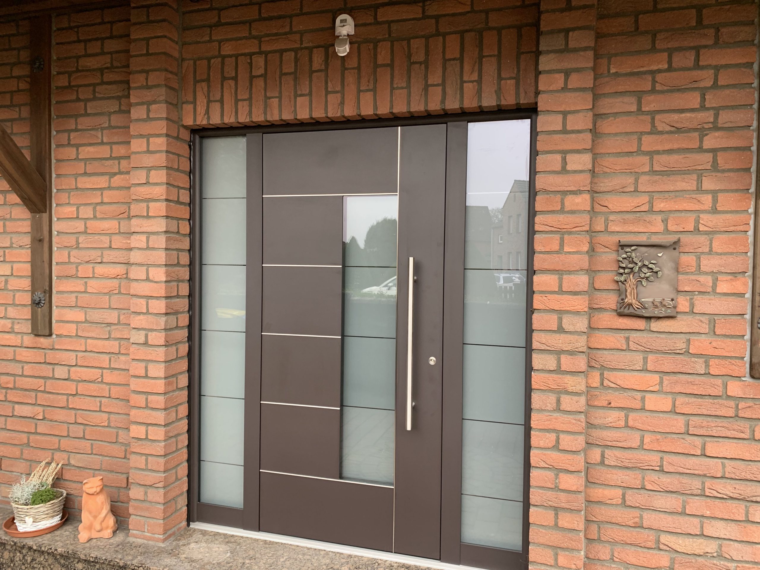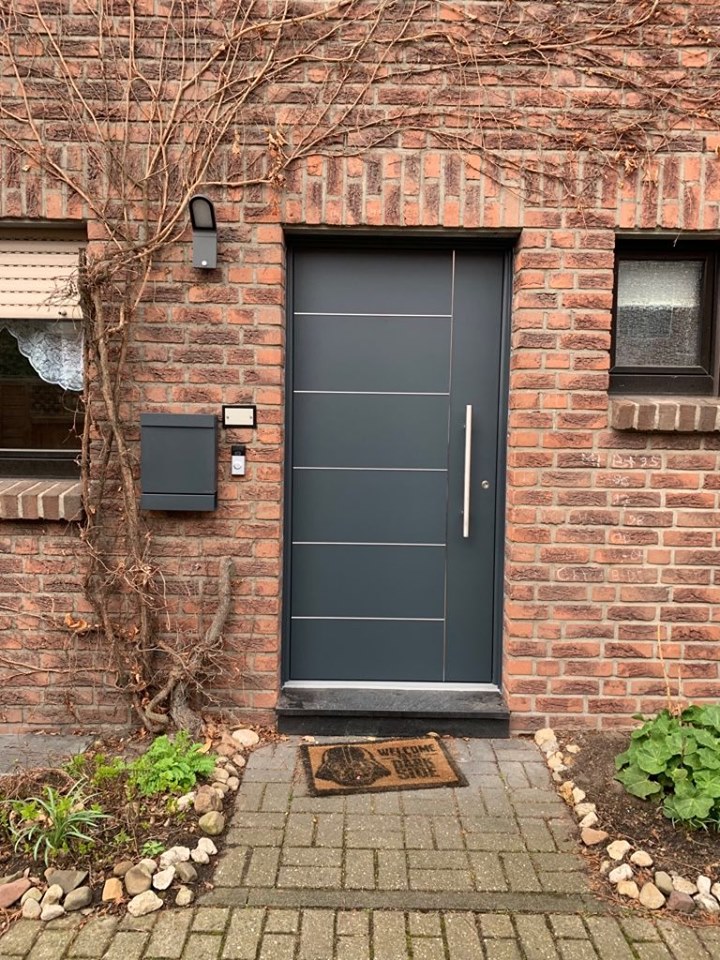 Jede Tür hat drei hochwertige Edelstahl-Rollenbänder. Sie sind 3-dimensional verstellbar und gewährleisten somit den optimalen Sitz der Haustüre. Die Dichtungsebene wird dadurch nicht unterbrochen.